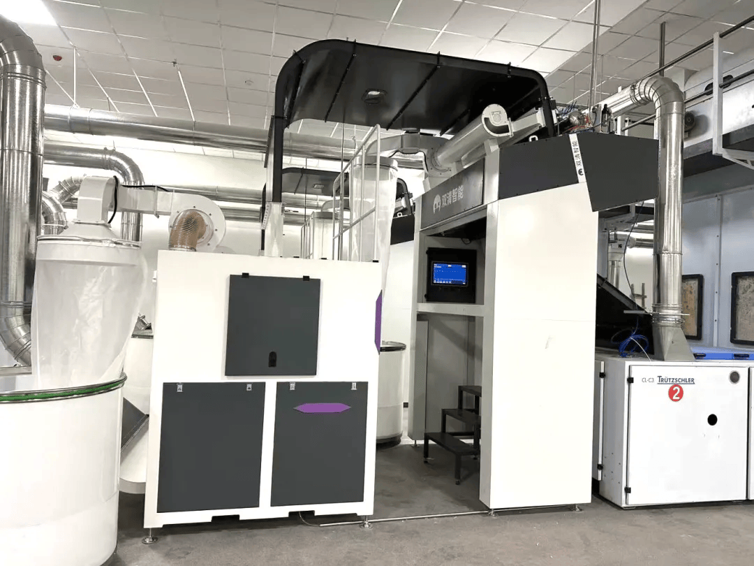 双清智能科技无限公司(以下简称“双清智能”)展出的超越-X系列同性纤维分拣机,搭载AI边缘检测集群取多光谱偏振相机阵列,异纤检出率不变超95%;其配套的清韵系列筒纱包拆系统实现全流程无人化操做,大幅降低企业用工成本。