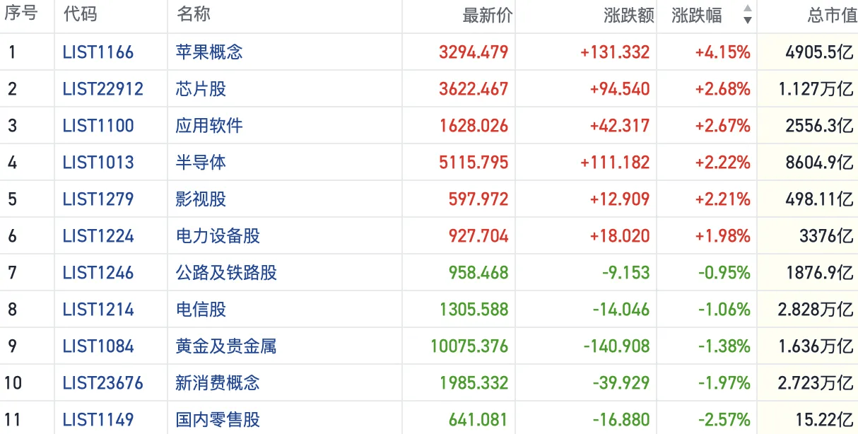 其他标的目的上,消费电子、半导体芯片、AI算力等板块接踵走强。此外,安全、券商、机械、制纸等根基面景气的行业也遍及上扬。